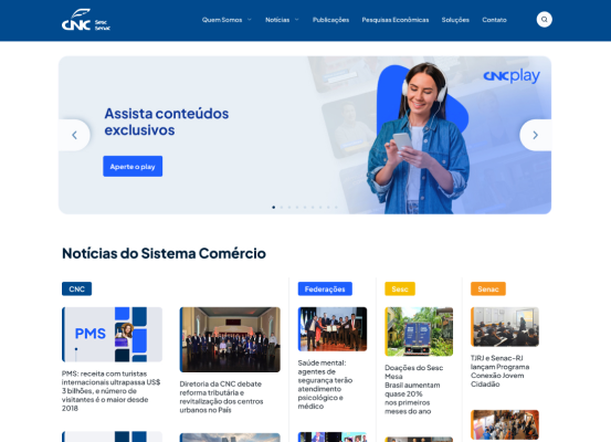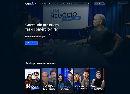 Criamos a identidade do CNC Play e seus programas, além do UX de uma plataforma estilo streaming, uma das mais acessadas do Portal do Comércio.