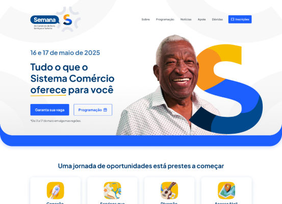 Desenvolvemos um site fácil de navegar, com a programação completa da Semana S, que ocorrerá simultaneamente no Brasil, destacando atrações e detalhes desse grande evento.