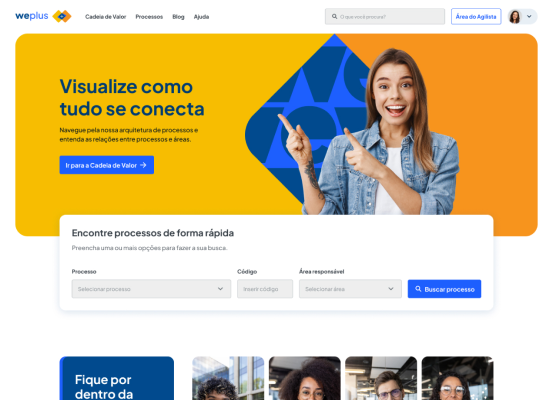 Mapeamos a jornada do usuário e criamos o We Plus para centralizar os processos da CNC, com busca avançada e conteúdos educativos.